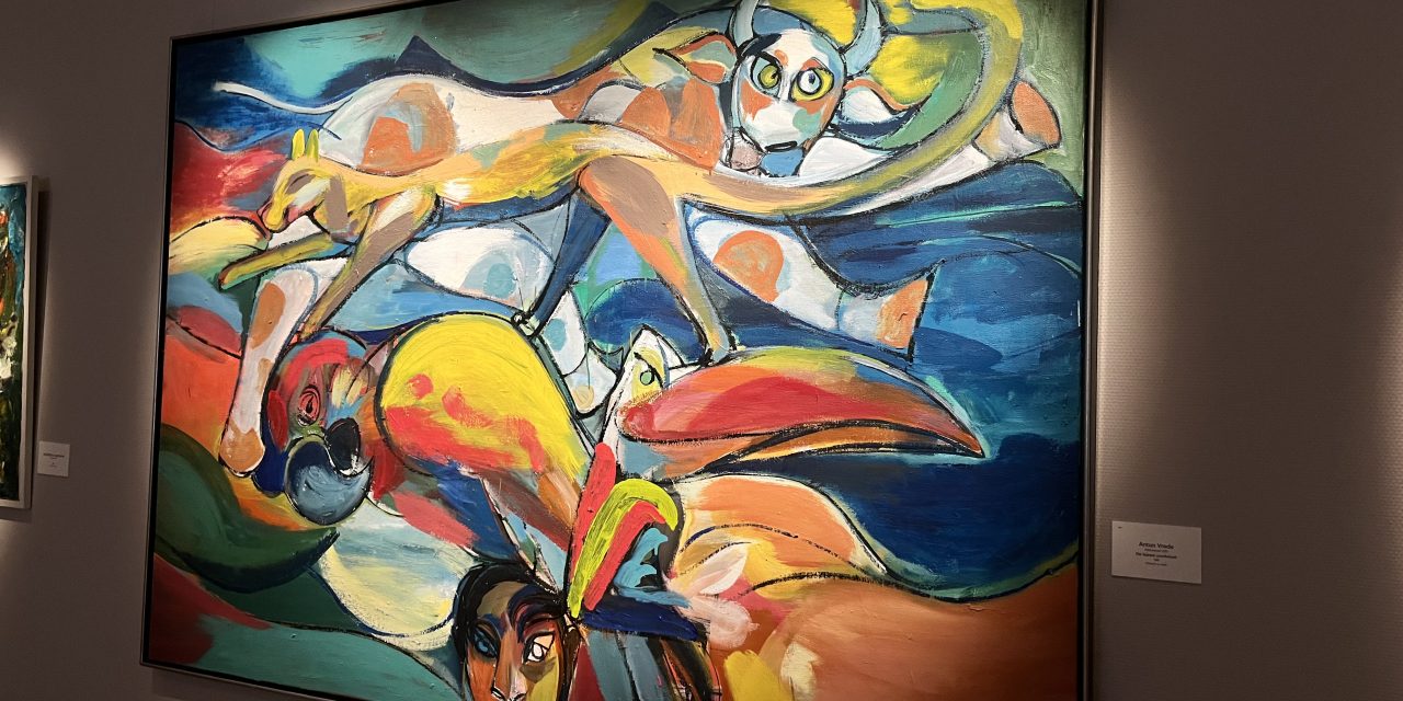 In de zaal valt het grote doek van Vrede op door de felle kleuren: De laatste zondvloed neemt bijna de hele muur in beslag. Bezoeker Marian Tieleman herkent de emotie in het werk. “De gezichten van de mensen en dieren stralen angst uit. Dat maakt indruk,” zegt ze. “Het zet echt aan het denken. Zulke exposities zijn belangrijk, omdat ze ook andere verhalen en culturen laten zien dan normaal in musea.”